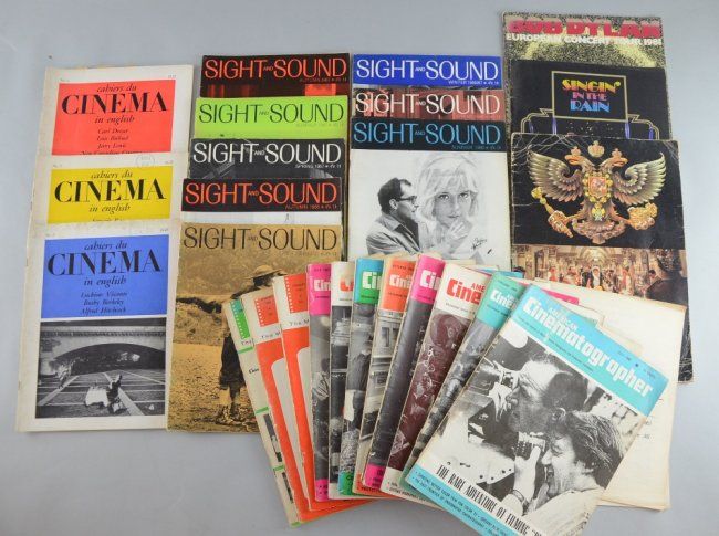 Cinema Magazines: Sight and Sound, 8 copies between 1965-67, American Cinematographer, 11 copies between 1960-68, Cahiers Du Cinema, 3 copies No 2, 3 & 4 & three programmes for Singin' In The Rain with Tommy Steele, Bob Dylan 1981 World Tour & Nicholas & Alexandra