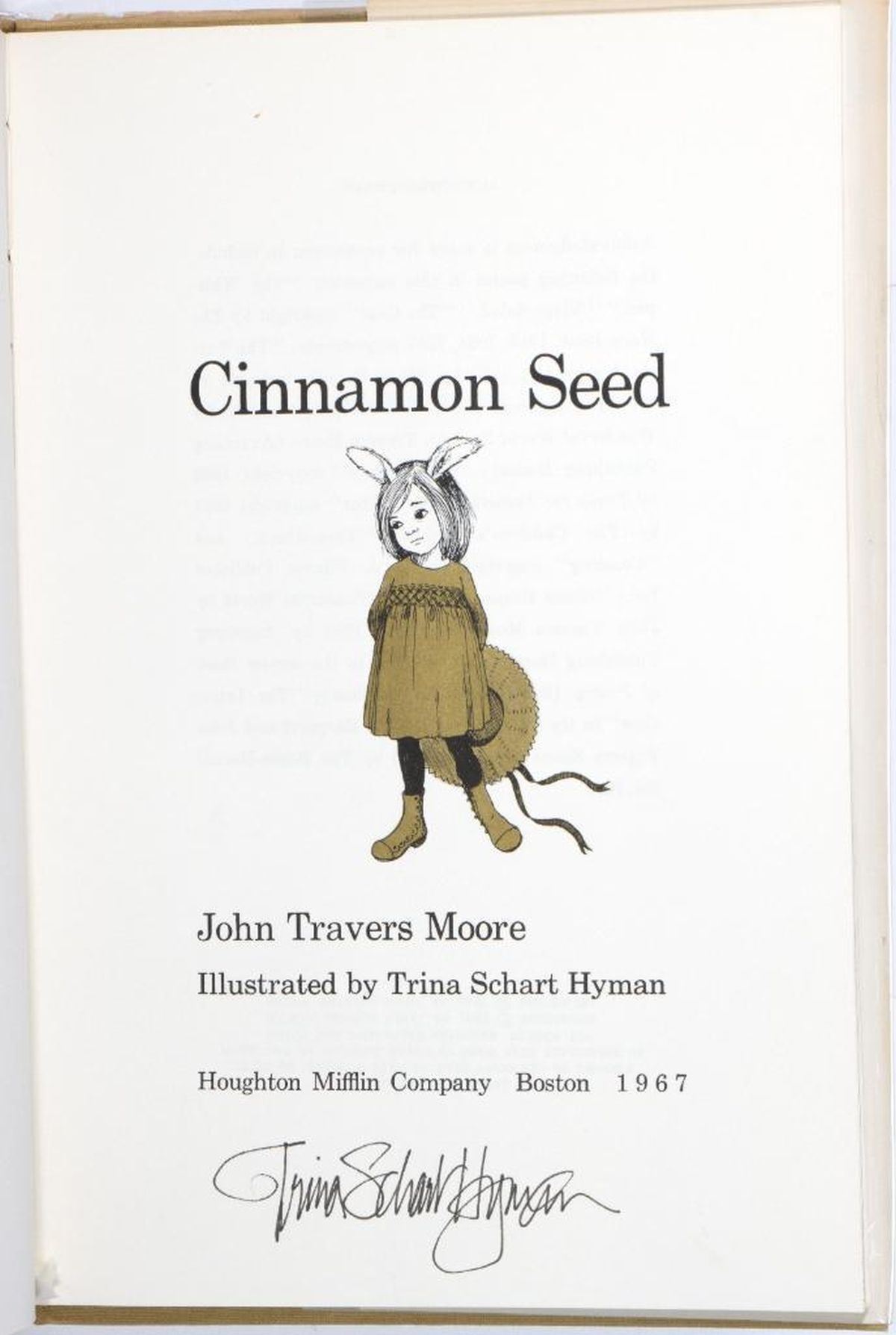 Cinnamon Seed by John Travers Moore, illustrated by Trina Schart Hyman.Houghton Mifflin 1967 first edition. Fine illustrated hardcover in very good jacket. Unique Hornbook review copy with review slip laid in. Signed by Hyman on the title page. Fine in very good jacket.