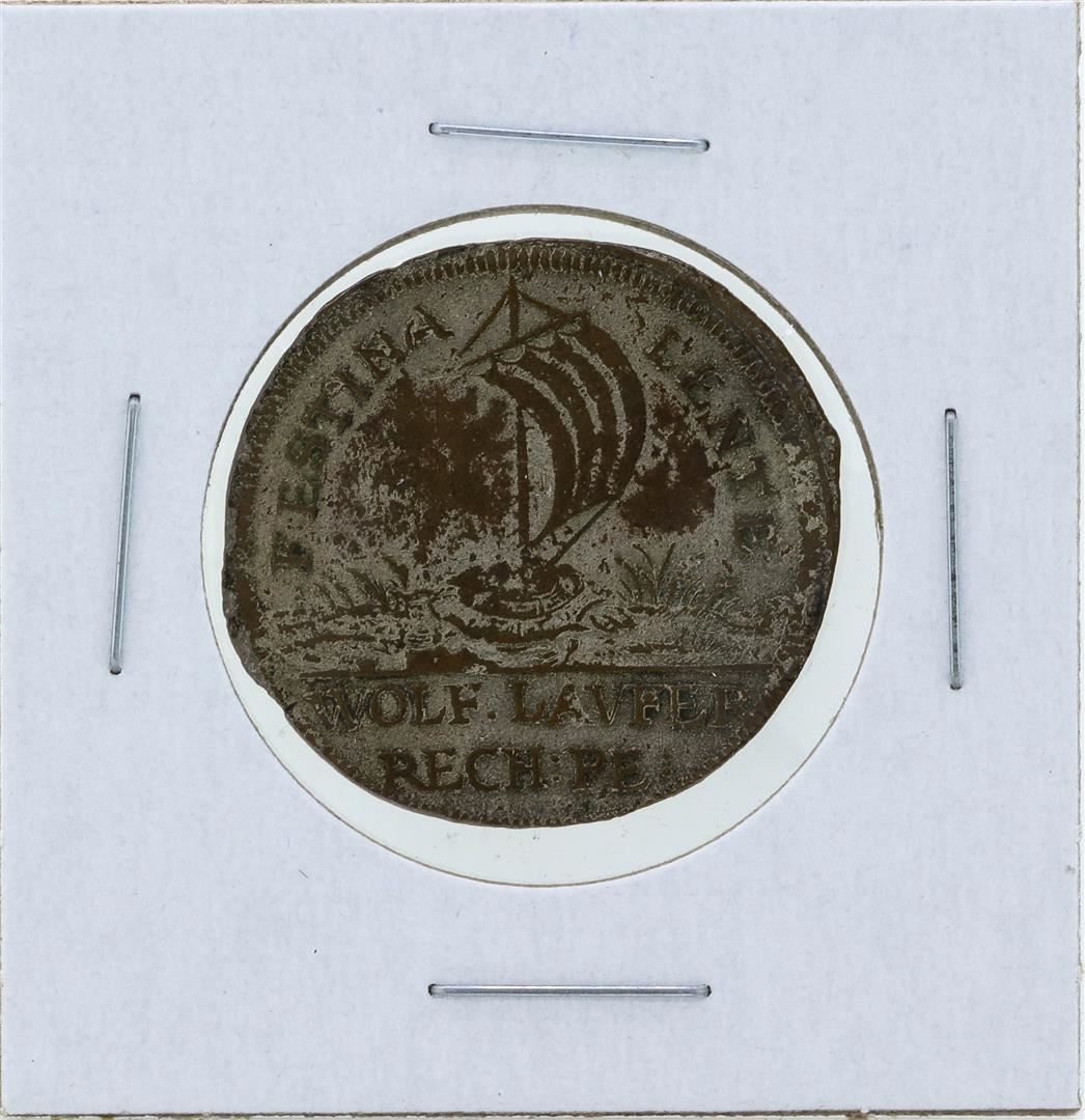 One Circa 1620 Germany Hercules Cretian Bull Turtle Lauffer Jeton Coin.