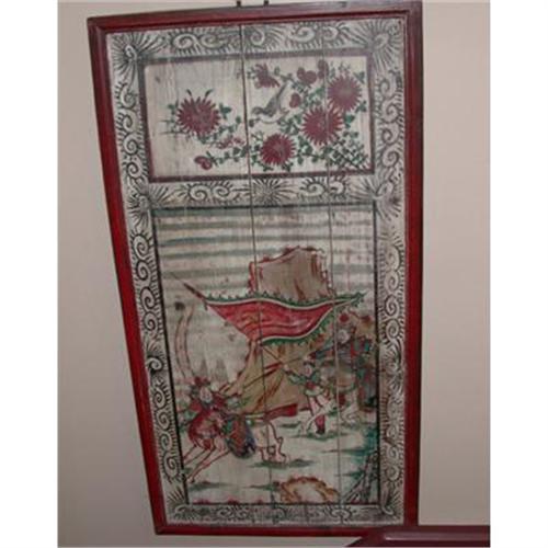 The paintings on these Circa 1790 Temple Panels tell the story of a great emperor. They say that he is the most powerful ruler and that under his rule, everthing is peaceful and fair and always will be. They were usually hung in temples. Each panel measures approx. 37 1/2" by 19 1/2".