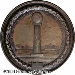 Circa 1852 Daniel Webster Bronze Medal AU58 Uncertifi <B>Circa 1852 Daniel Webster Bronze Medal AU58 Uncertified.</B></I> 76mm. The obverse depicts a naked bust right in high relief with DANIEL WEBSTER along the border. The exergue states C.C. WRIGHT. D & F., this refers to medalist Charles Cushing Wright (1796-1854). The reverse depicts a Roman column surmounted by a globe with Union shield below. The reverse legends are LIBERTY AND UNION, NOW AND FOREVER, ONE AND INSEPARABLE. / I STILL LIVE / MEADE. BROS. DAG: F.W. GREENE. PUB: Light wear or flatness of strike above the ear, and occasional traces of gray verdigris are present along with a couple of small planchet flaws on the reverse field and a minor obverse edge nick at 7 o'clock. Daniel Webster (1782-1852) was a Whig Senator, and a Secretary of State under three Presidents. <BR><BR><B>Important notice:</B> Heritage usually auctions material at the rate of 200-250 lots per hour. On some occasions eBay Live bid software or the Internet may not be able to keep up with the pace of the auction. We recommend placing a realistic absentee bid now as insurance to avoid disappointment. Occasionally the auctioneer may eliminate or reject an eBay Live bid, and the auctioneer may also reopen a lot after the close of the eBay live bidding (usually because we missed an audience bid), and may reject your bid even if it shows you as the winning bidder. By bidding via eBay Live, you agree that Heritage may award the lot to another bidder at its sole discretion under the circumstances described above or any other reasonable circumstances. Since eBay bids are not shown to us until we open the lot on the floor, we treat those bids just like floor bids. In most cases the floor responds before the eBay bid is presented to us, due to Internet lag time, so for consistency we have made it a policy that floor bids are always considered first over tie eBay live bids. Also please note that all Heritage lots purchased through eBay Live carry a 20% Buyer's Premium. Please make sure you read the Terms and Conditions before you bid. This lot is being auctioned in conjunction with a live floor auction by Heritage Galleries & Auctioneers. All final auction and invoice information will be supplied by Heritage Galleries & Auctioneers, and all other information should be considered preliminary. Lot:8038