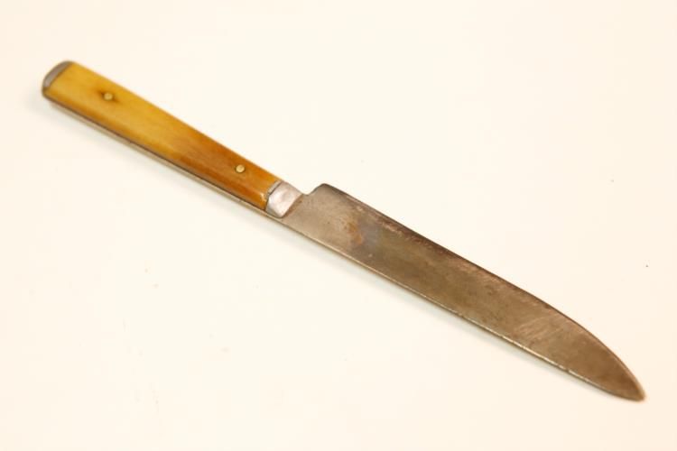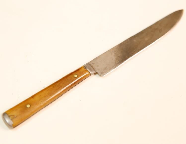 This Excellent Circa 1860 Black Powder 7" Patch Knife has a quality White Grained Handle with beautiful grain. 7" in total length. Great early knife!
