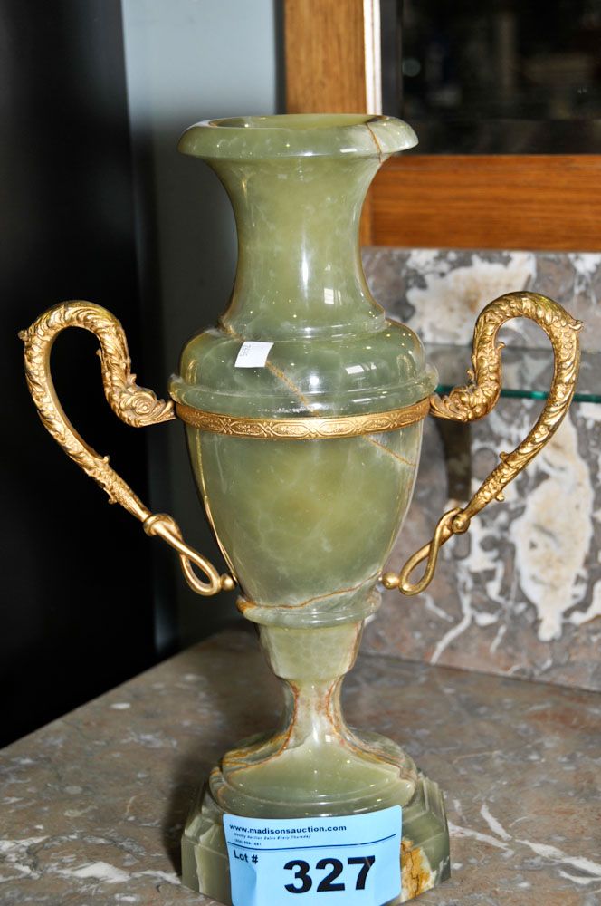 Circa 1880 Onyx vase with dolphin handles
