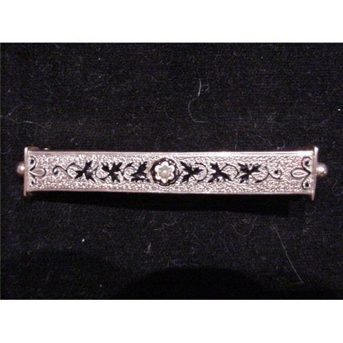 Absolutely wonderful 14Kt yellow gold black enamel tracery and small pearl bar pin circa 1895 Victorian. Wonderful condition. Reverse also has hook so you can hang something off of it if you wish. Wonderful original condition. Great details