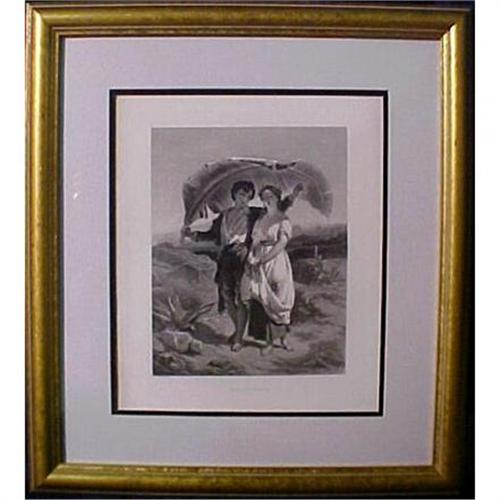 Circa 1900 Engraving 'PAUL & VIRGINIA' By J. Van Lerius. Double matted in fine gold frame. This is truly a wonderful engraving.