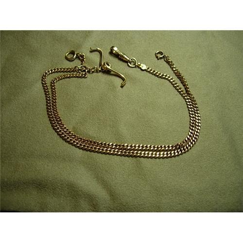 Attractive 14kt yellow gold curblink DOUBLE man's watch chain with hook and bar - trademark AF 14K with maker's mark - 21" length by 3.7mm double watch chain. Great condition!!