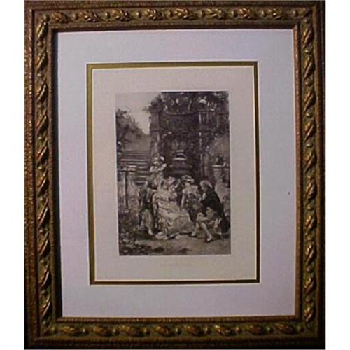 Circa 1900 Print 'THE STORY TELLER' BY A. Lonza. Double matted in rustic gold frame. Condition is very good. This piece is Absolutely Charming.
