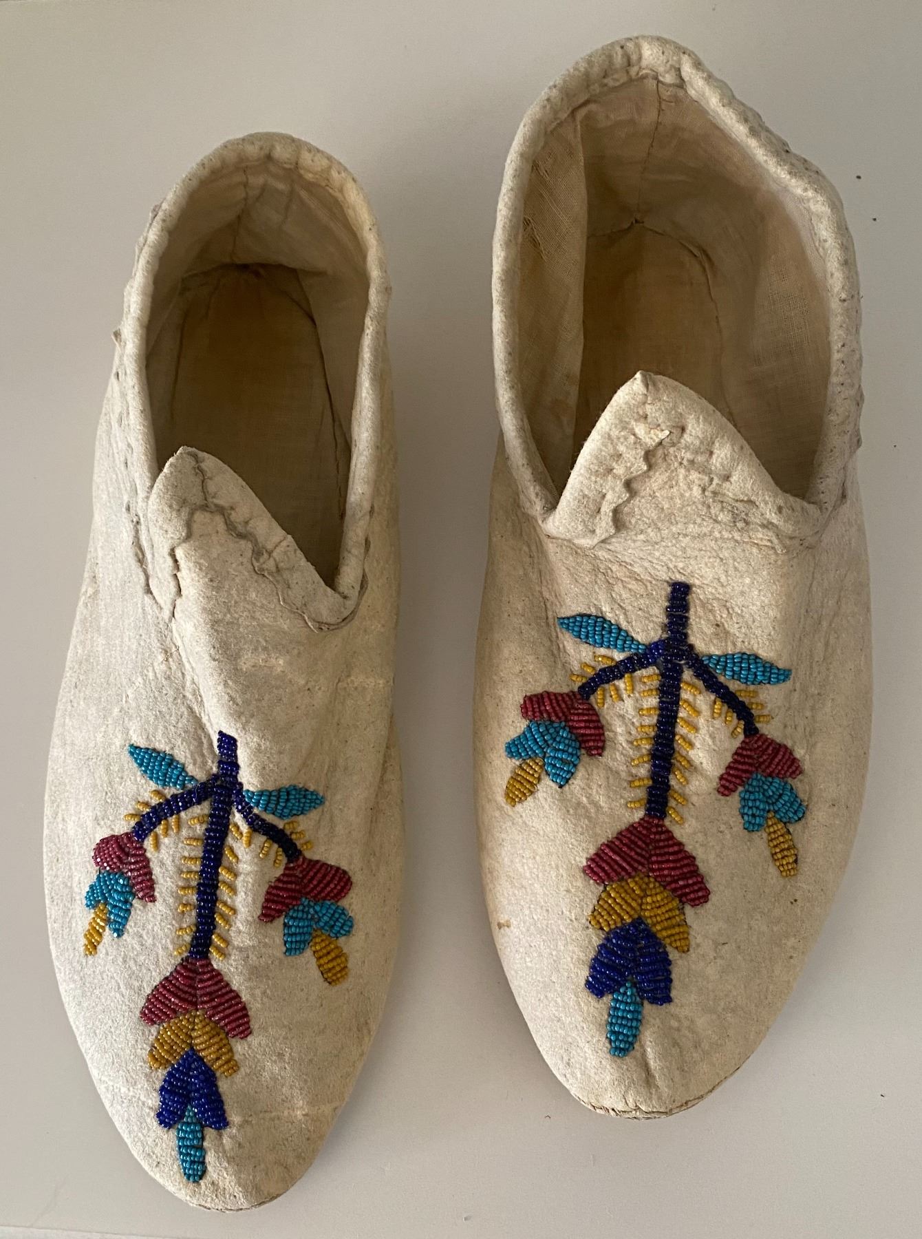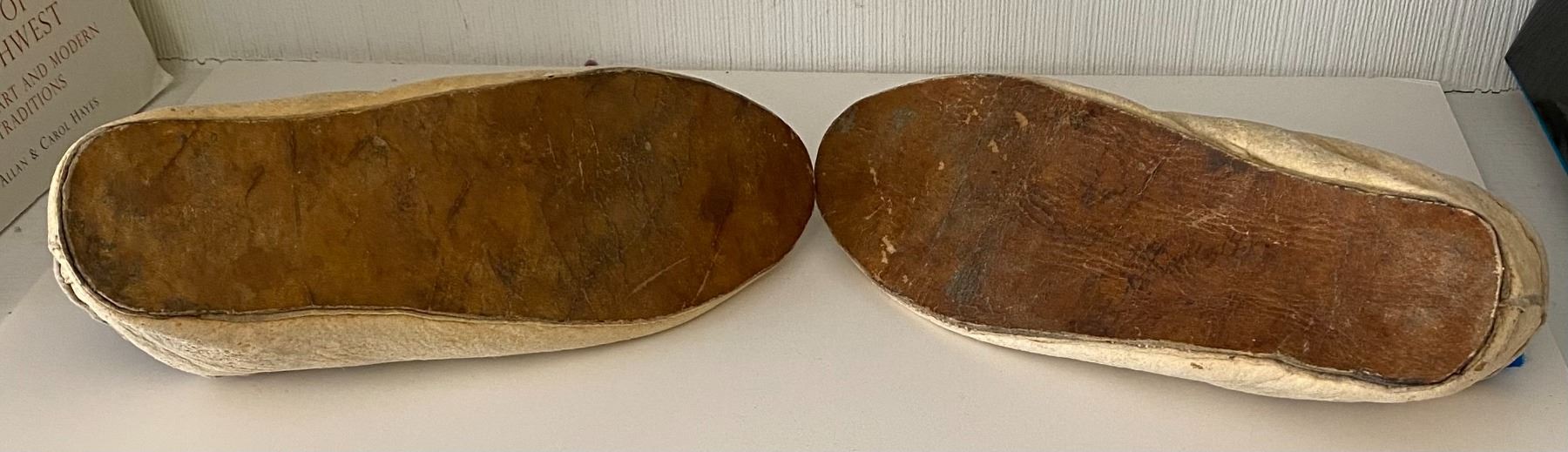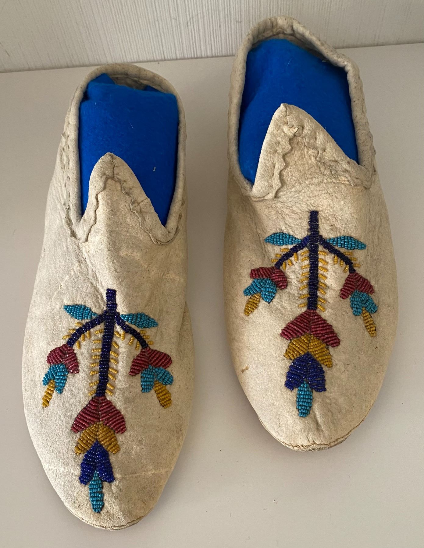 Very nice early Bead Work on this pair of circa 1900 Santee Sioux Slippers. Scalloped Edges make for a nice design effect.
