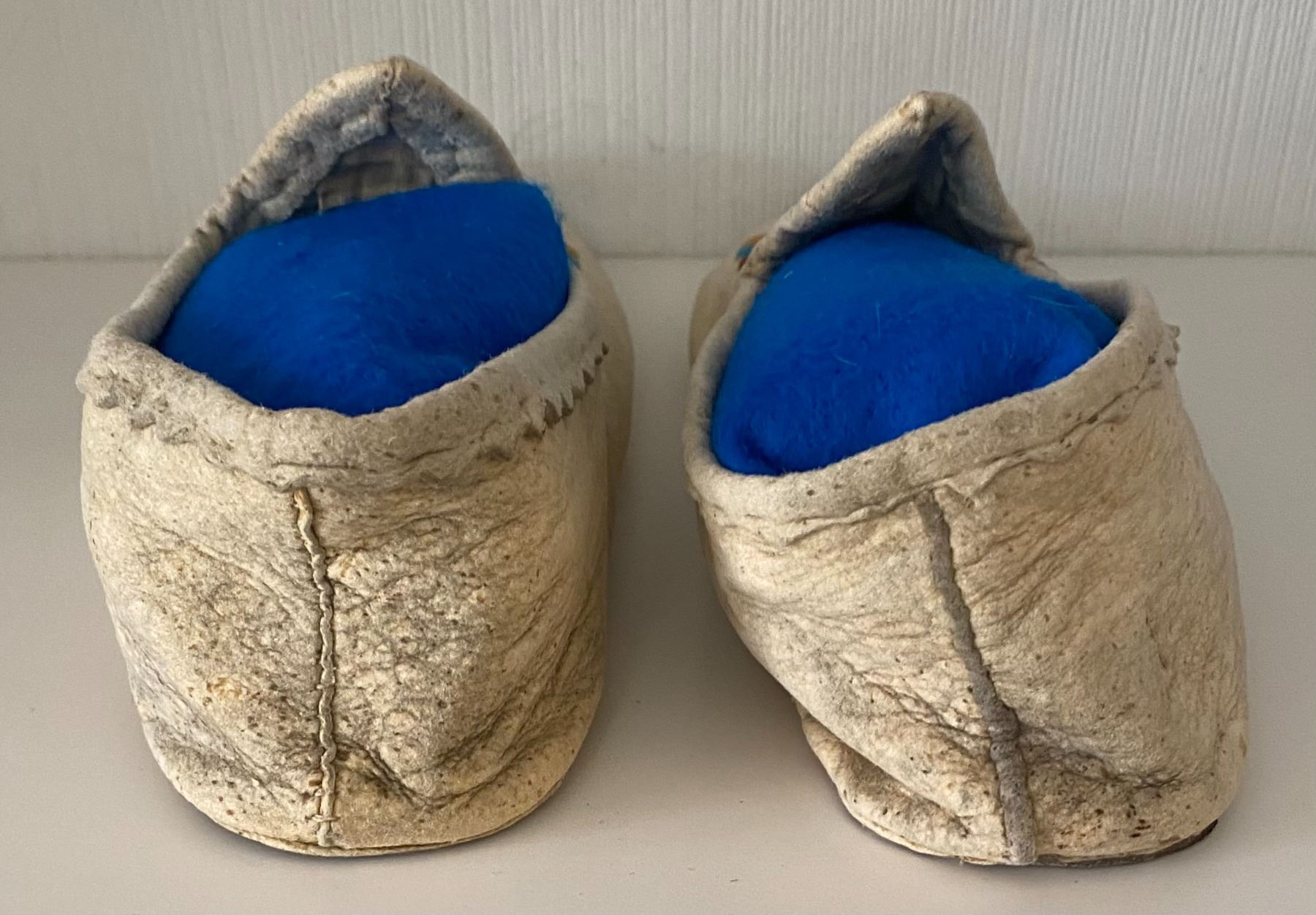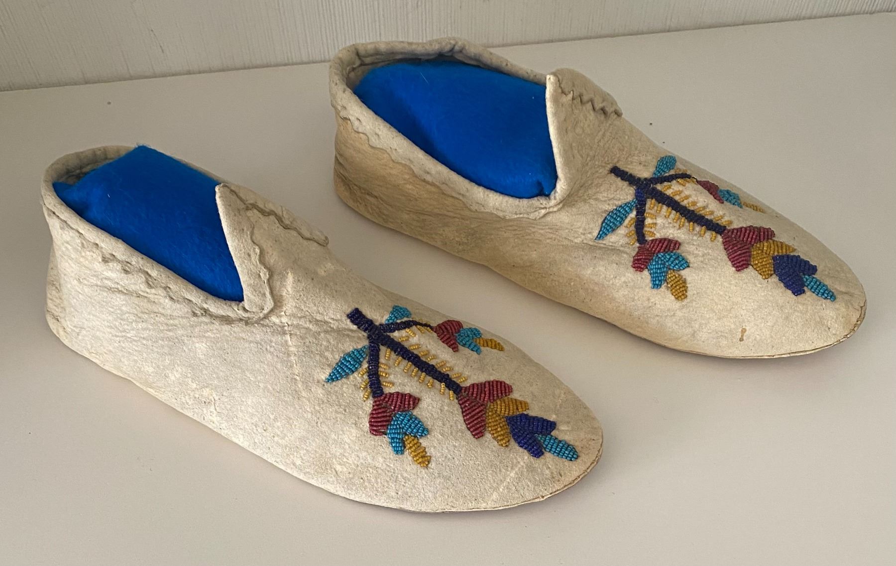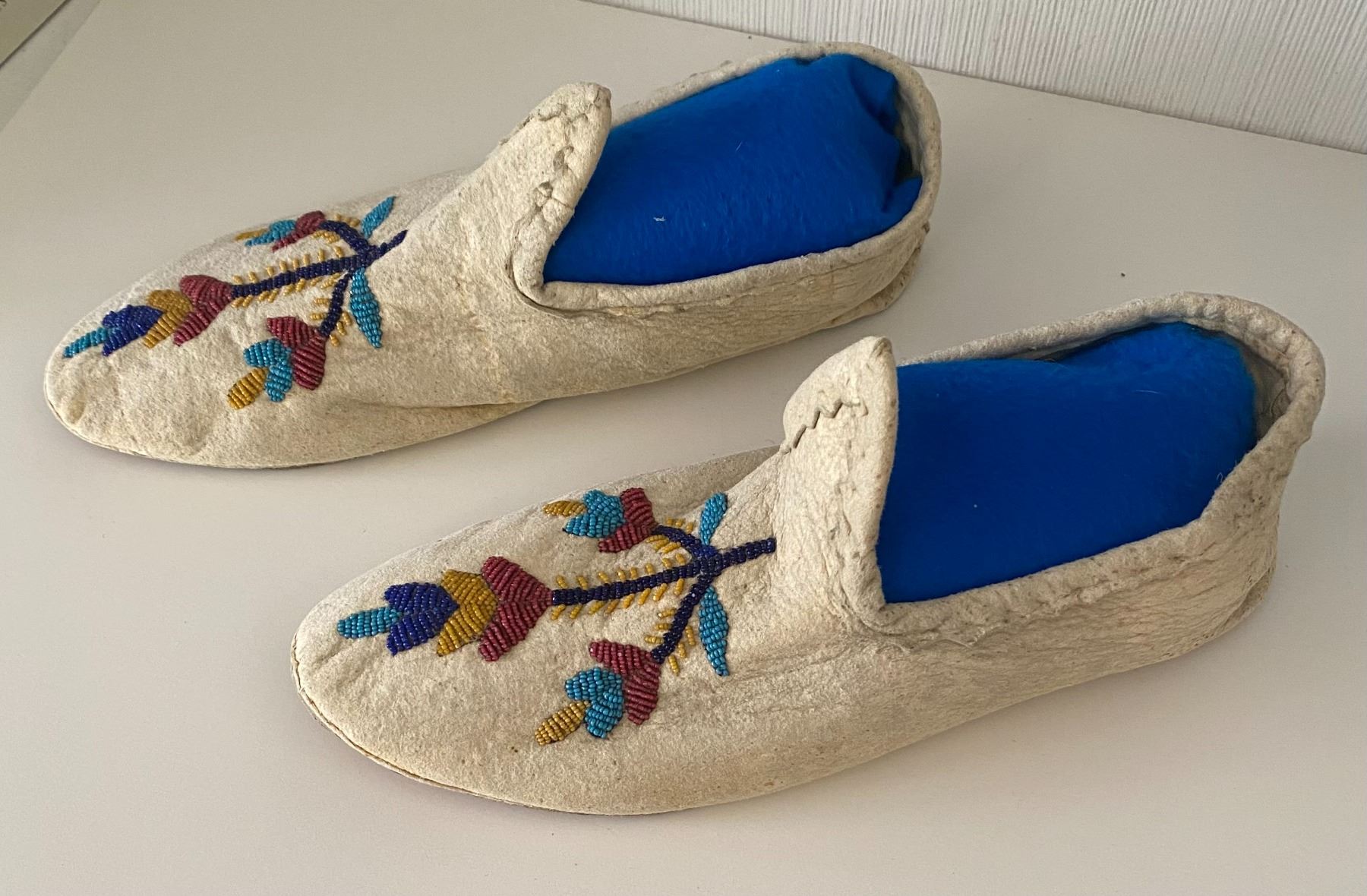 Very nice early Bead Work on this pair of circa 1900 Santee Sioux Slippers. Scalloped Edges make for a nice design effect.