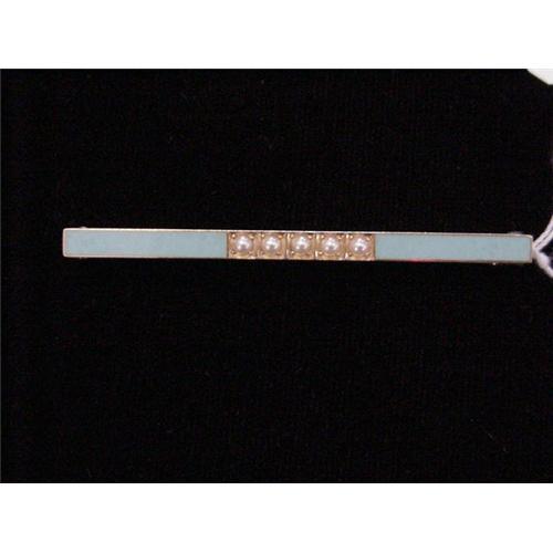 Just absolutely wonderful circa 1910 by Krementz famous American maker 14kt yellow gold, baby blue and pearl bar pin in fabulous original condition. A must have.