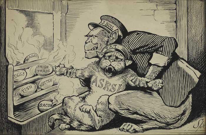 The coals are inscribed "IRISH TRADE", "WAGES", "EGGS", "FISH", "BACON" and "BUTTER". Add note ++++++++++++++