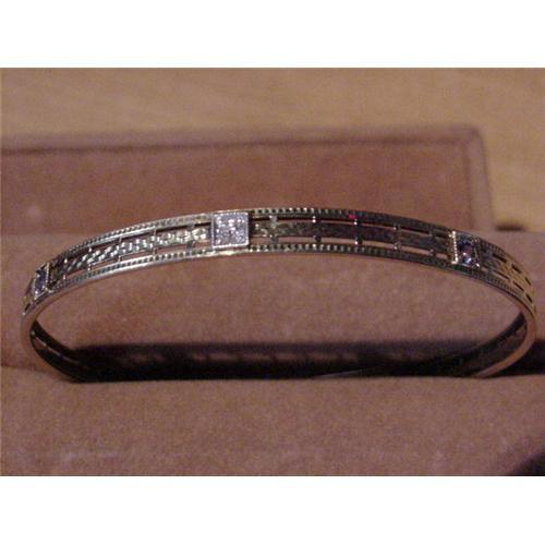 Beautiful Circa 1915 American (Newark, NJ famous maker) Carter, Gough Hallmarked 14kt Yellow gold, Continual bangle set with one OEC small diamond approx. .08ct along with two small baby blue sapphires. Wonderful condition. Great tailored look. Fabulous piece. Average size (slips over hand).