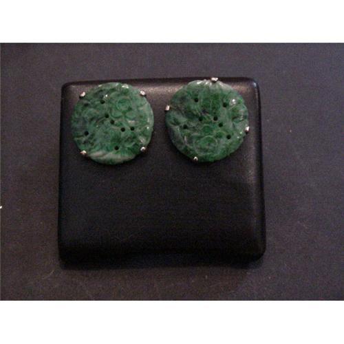 Wonderful Circa 1920 14kt yellow gold and jadeite button style on post earrings each set with a wonderful piece of jadeite jade with floral carving and pierced design. Wonderful wonderful color and condition. Quite a nice set of jade earrings