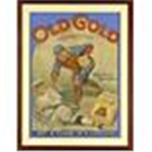 Circa 1920s die-cut cardboard display for Old Gold Cigarettes, featuring a baseball theme with a catcher and a player sliding into home plate. Vintage image style displays beautifully, matted and framed to 27" x 35". Appears EX with some creasing, more so on the edges.