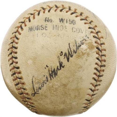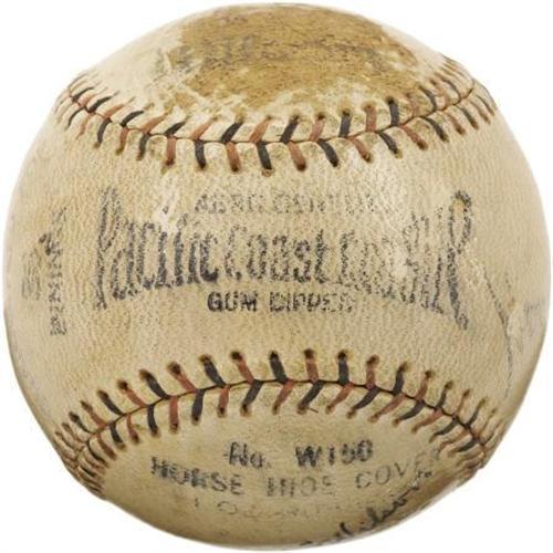 <B>Circa 1930 Lewis "Hack" Wilson Single Signed Baseball.</B></I> Although just five-foot six inches tall, Wilson tipped the scales at 195 pounds of muscle, with an eighteen inch neck but just size six shoes. One sports writer suggested he was built along the lines of a beer keg, and not wholly unfamiliar with its contents. Sadly, the Hall of Fame slugger's life was cut short by his alcoholism at age forty-eight soon after the close of the Second World War, and a full thirty-one years before Cooperstown came calling. One could point to these factors to explain the scarcity of his autograph in the hobby today, particularly in the single signed baseball format of the offered lot. Unquestionably the toughest member of the Fifty Home Run Club, Wilson provides a marvelous 9/10 black fountain pen signature on the side panel of this Pacific Coast League ball. Some surface wear flirts with the edges of the autograph but never intersects, as if understanding just how rare and special it is. A rare opportunity to elevate your collection to a level that few others match. <I>LOA from James Spence Authentication.</B></I><BR><BR><b>Shipping:</b> Balls, Pucks, etc., Small (<a target="_blank" href="http://www.heritageauctions.com/common/shipping.php">view shipping information</a>)