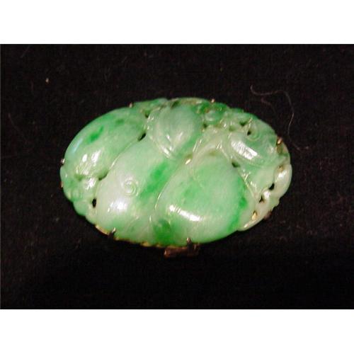 Wonderful Circa 1930s carved jadeite jade brooch/pendant set in silver mount in great condition. Beautiful color nicely carved "peaches". Nice thick piece of jadeite. Pretty color jadeite. Wonderful