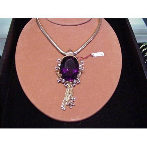 Absolutely stunning circa 1935-40 18kt yellow gold, with diamonds set in platinum Large amethyst and diamond pendant accompanied by a 10kt yellow gold circa 1935-40 snake or gas pipe chain. This pendant is just outstanding. We believe that it was custom made for someone in the 1930s-40. Wonderful unusual design. Great craftsmanship. Wonderful big important piece. Great look on!! No one has one like this! Absolutely Gorgeous one of a kind!!