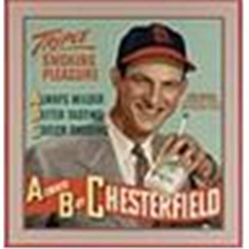 Circa 1948 "Always Buy Chesterfield" cardboard advertisement featuring HOF Stan Musial. Matted and framed to 24" x 25-1/2", appears to be EXMT with minor creasing and some pinholes.