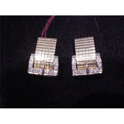 Attractive 14kt yellow gold and diamond circa 1950 "buckle" style cufflinks in wonderful condition. Absolutely great look. Each cufflink is set with 12 full cut diamonds in each cufflink for a total weight of approx .40 cts in each cufflink for a total weight of approximately .80 cts. Maker's Mark stamped on reverse and also "14K" gold quality mark. Great cufflinks!!