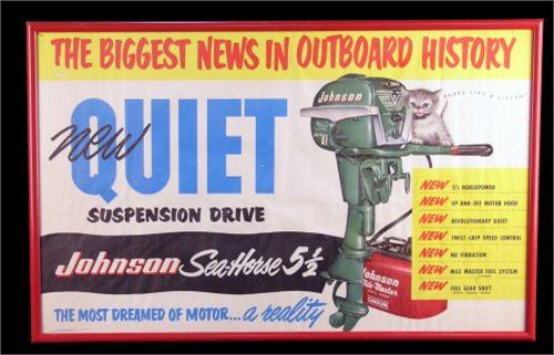 Circa 1950, "Johnson Outboard Motor" poster... paper ad, framed 27 x 42"