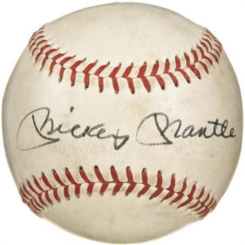 <B>Circa 1970 Mickey Mantle Single Signed Baseball.</B></I> While we freely admit that Mantle singles aren't exactly rare in the collecting hobby, this special offering is a cut above the typical example. The Mick's 10/10 black ink sweet spot signature clearly predates the autograph show era, perhaps even applied during Mantle's final seasons as a player. The ball itself is earlier still, an OAL (Harridge) sphere that could be no later than Joe Cronin's assumption of the American League presidential role in 1959. The ball appears to exhibit some game use but still presents very nicely, as our catalog photography should effectively indicate. <I>LOA from PSA/DNA. LOA from James Spence Authentication.</B></I><BR><BR><b>Shipping:</b> Balls, Pucks, etc., Small (<a target="_blank" href="http://www.heritageauctions.com/common/shipping.php">view shipping information</a>)