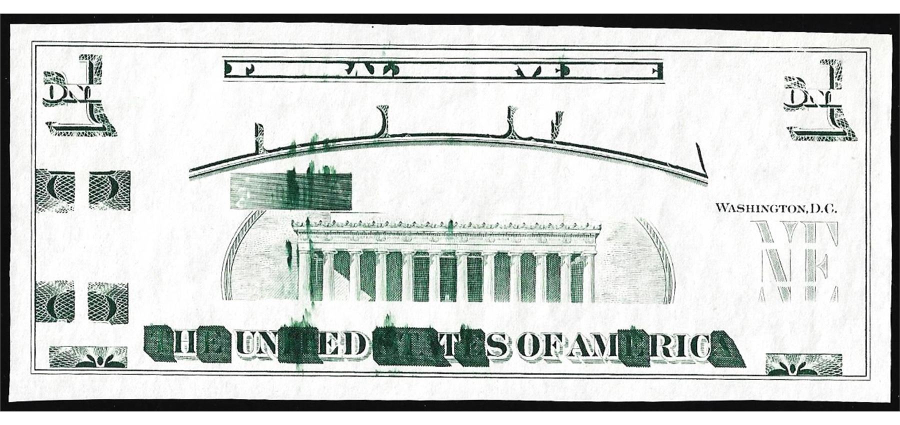 One Circa 1970's Lincoln Memorial Giori Test Ink Smear Error Note.