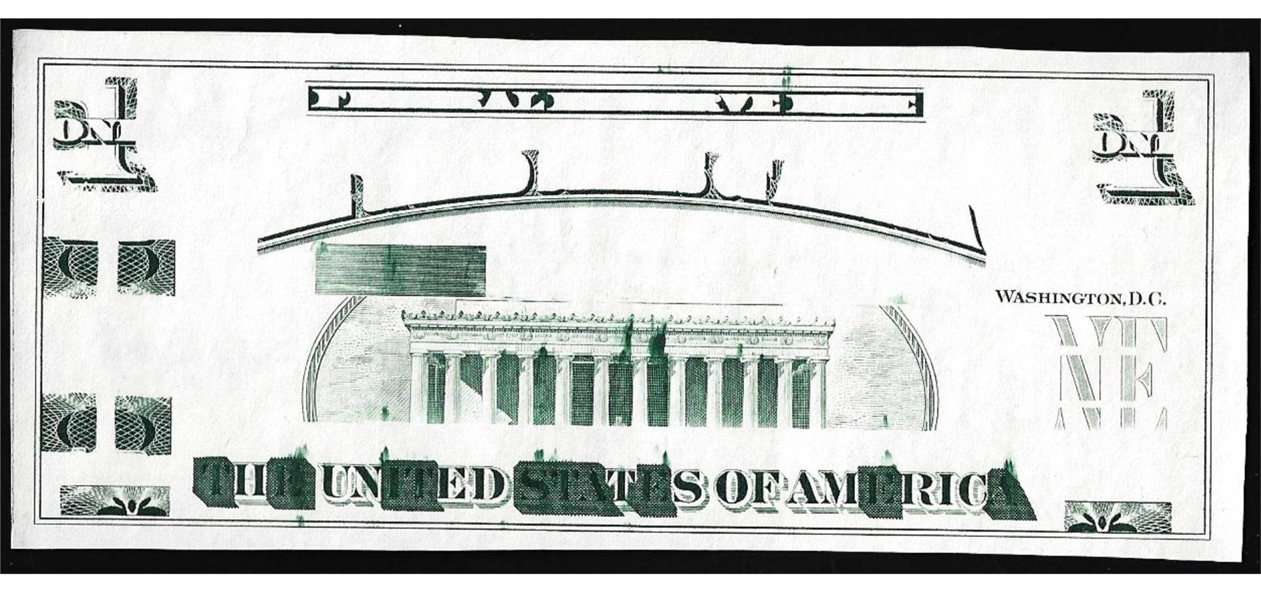 One Circa 1970's Lincoln Memorial Giori Test Ink Smear Error Note.