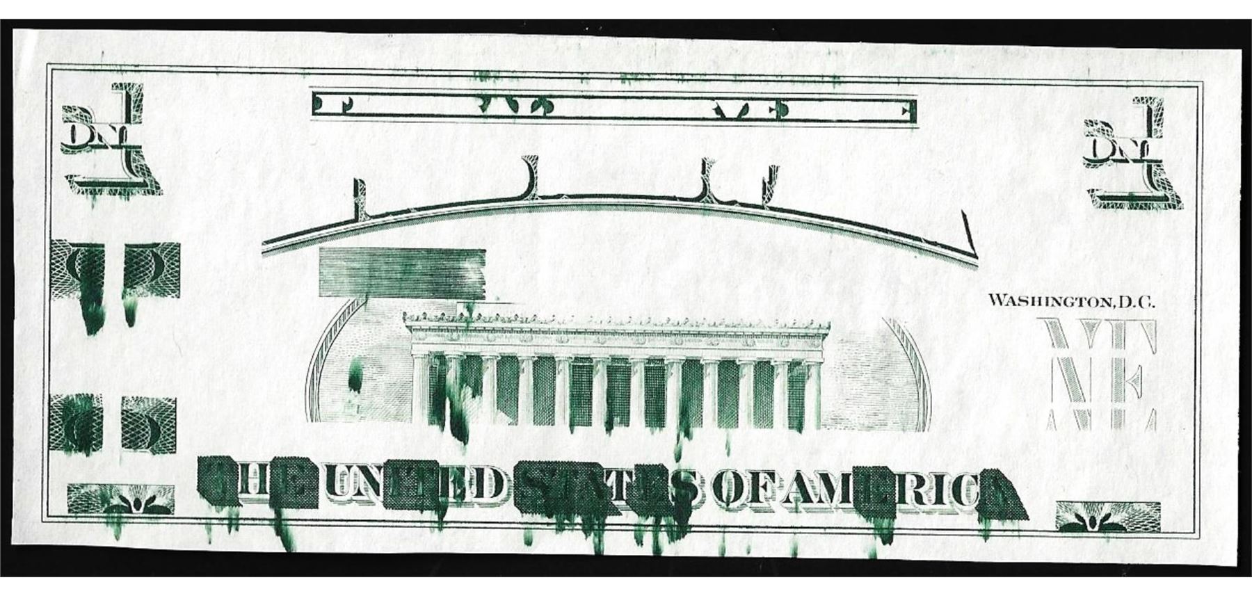 One Circa 1970's Lincoln Memorial Giori Test Ink Smear Error Note.