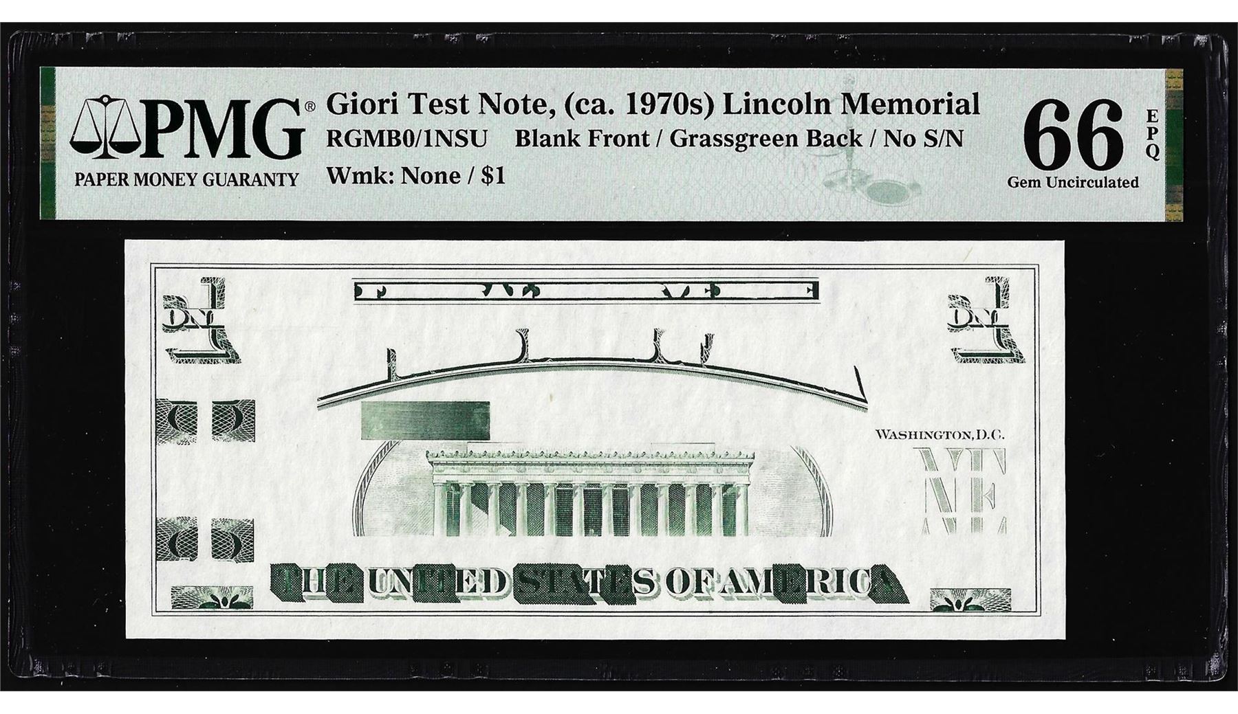 Circa 1970's Lincoln Memorial Giori Test Note PMG Gem Uncirculated 66EPQ