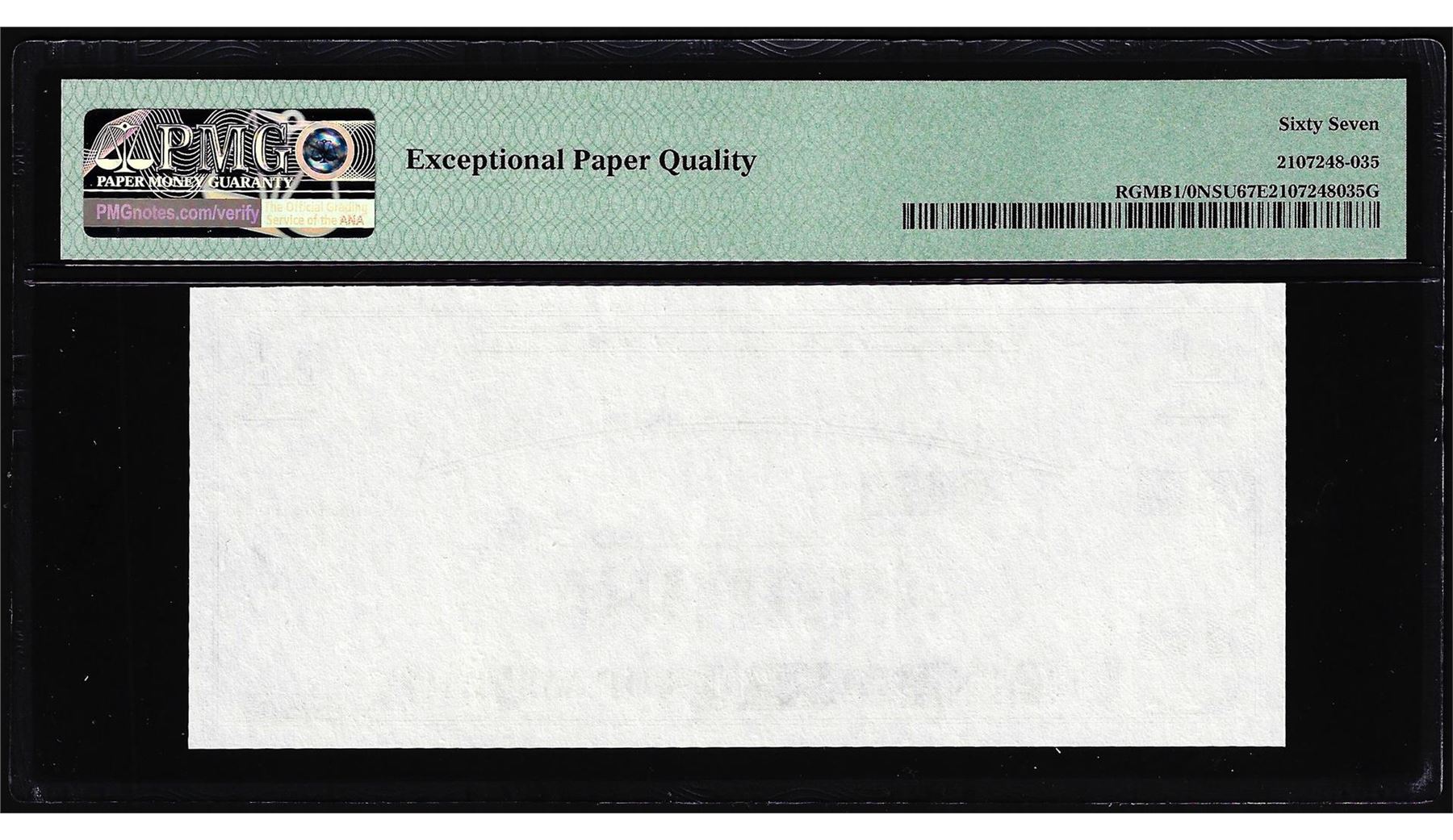 One Circa 1970's Lincoln Memorial Giori Test Note PMG Superb Gem Uncirculated 67EPQ. PMG Certified.