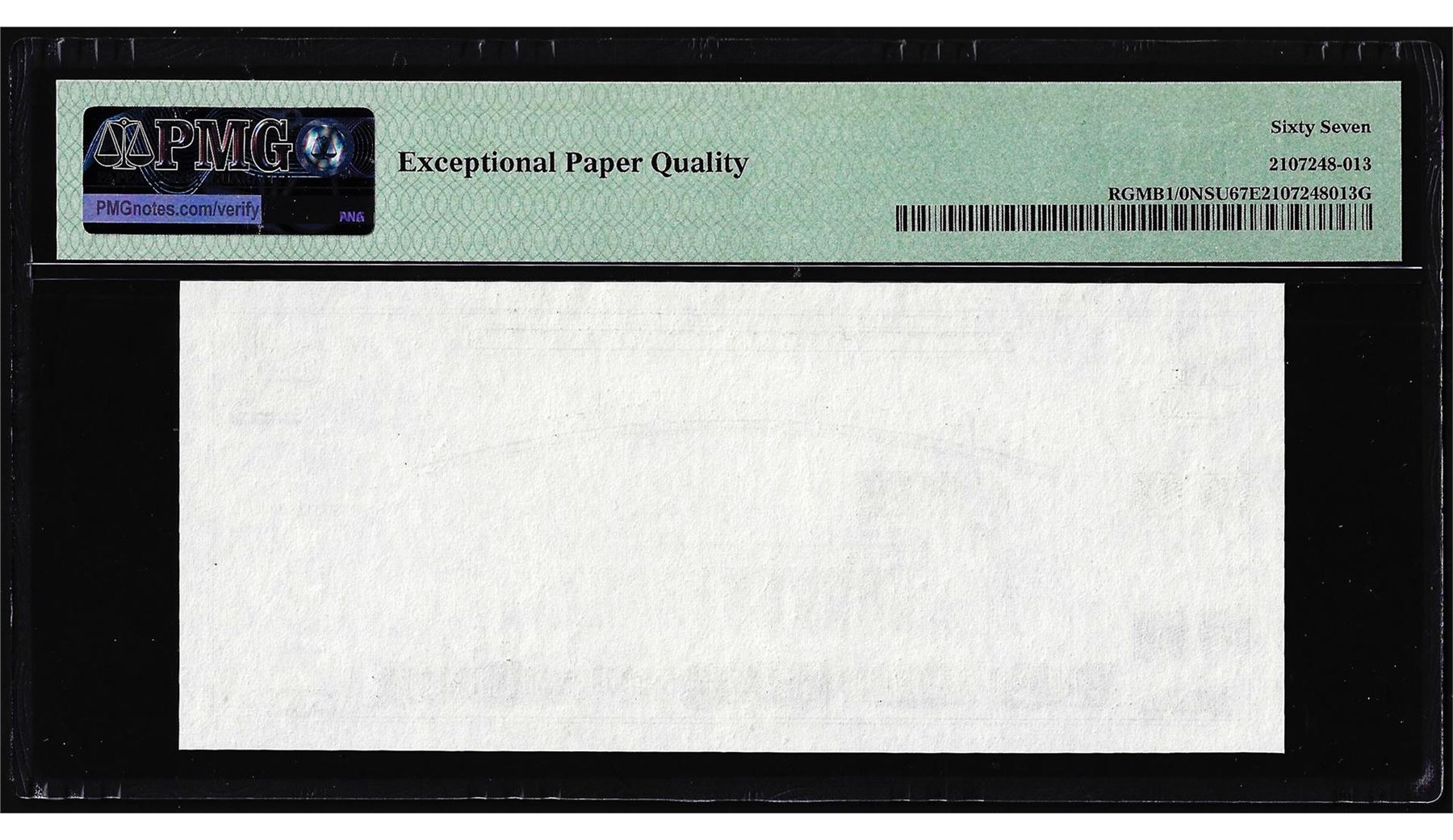 One Circa 1970's Lincoln Memorial Giori Test Note PMG Superb Gem Uncirculated 67EPQ. PMG Certified.
