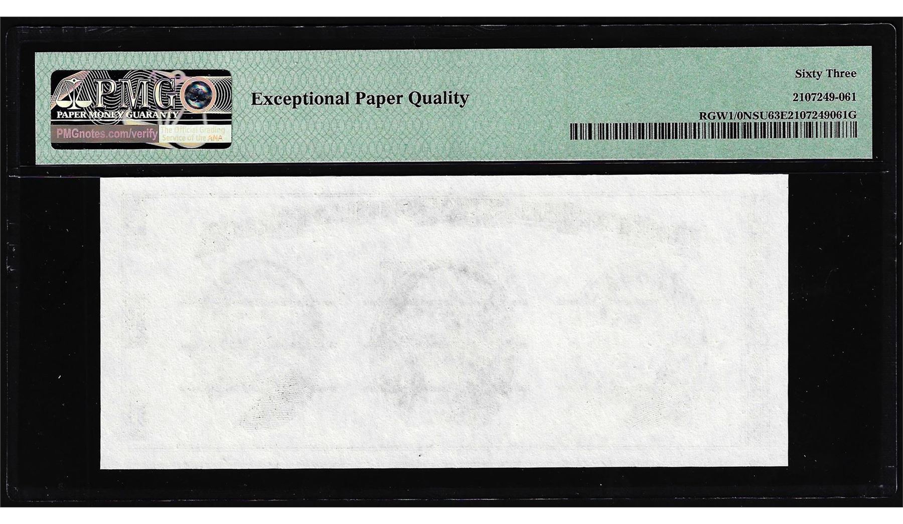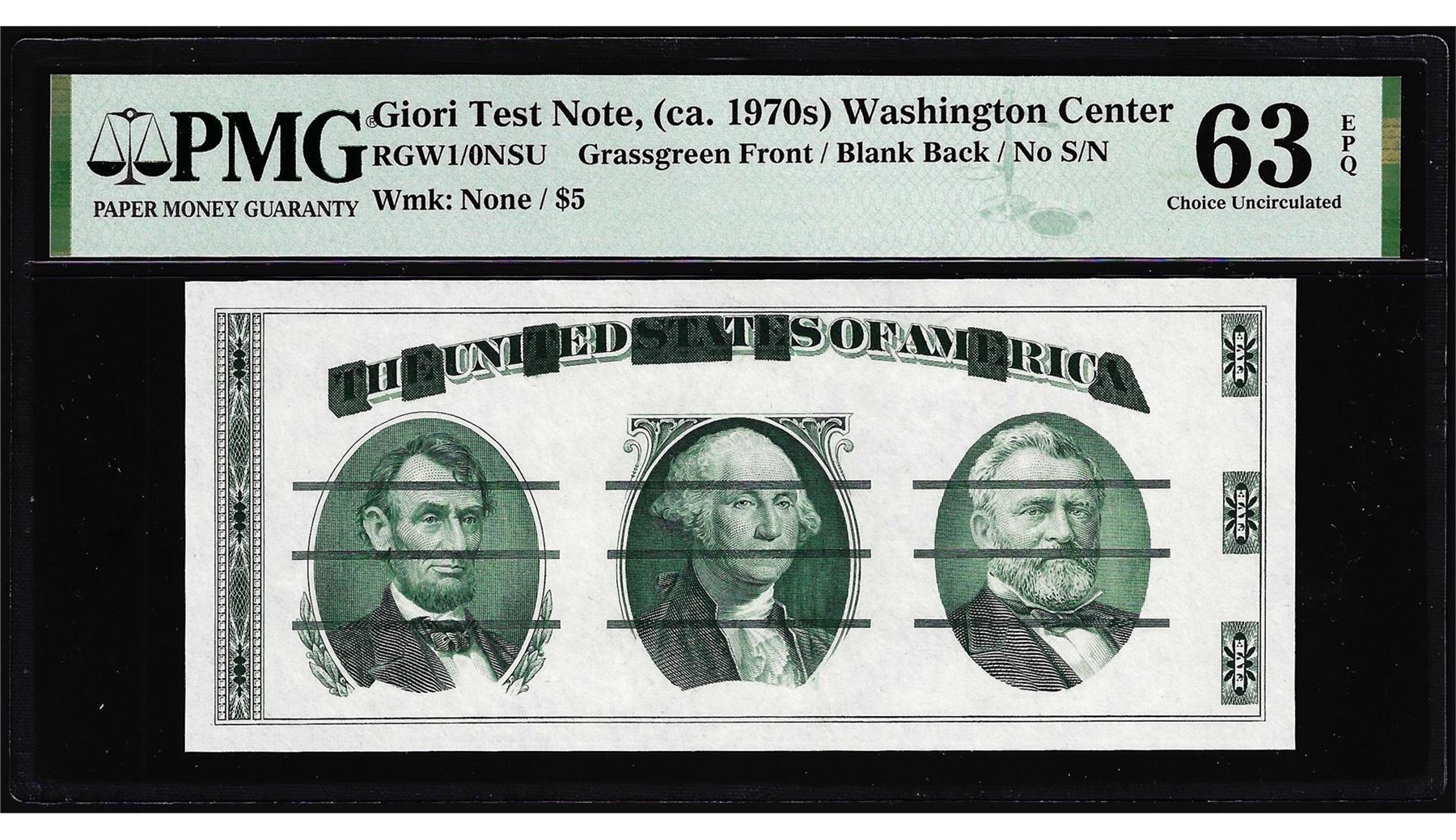 One Circa 1970's Washington Center Giori Test Note PMG Choice Uncirculated 63EPQ. PMG Certified.