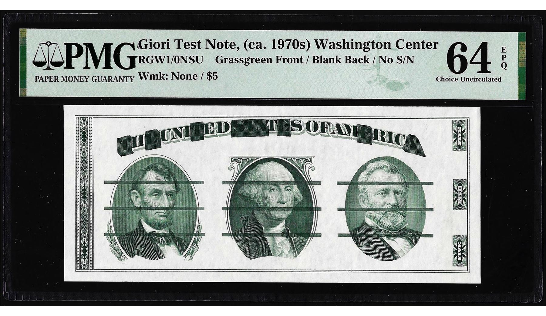 One Circa 1970's Washington Center Giori Test Note PMG Choice Uncirculated 64EPQ. PMG Certified.