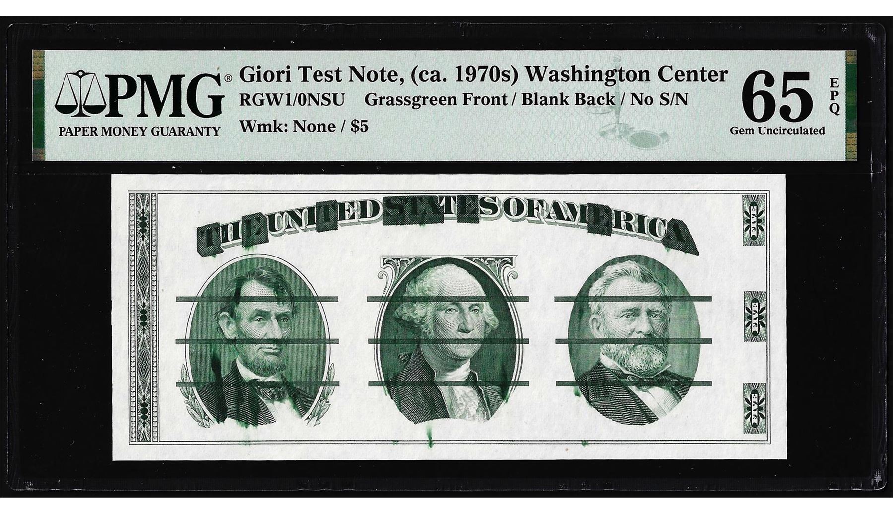 One Circa 1970's Washington Center Giori Test Note PMG Gem Uncirculated 65EPQ. PMG Certified.