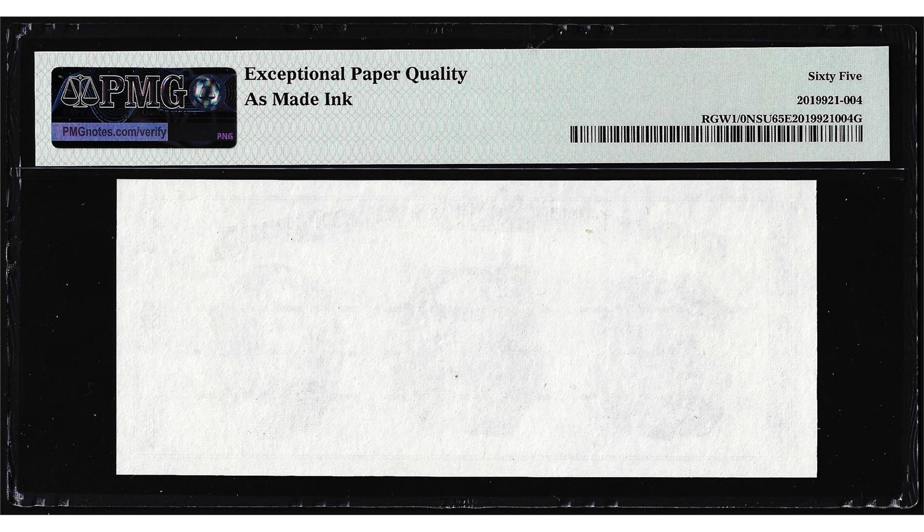 One Circa 1970's Washington Center Giori Test Note PMG Gem Uncirculated 65EPQ. PMG Certified.