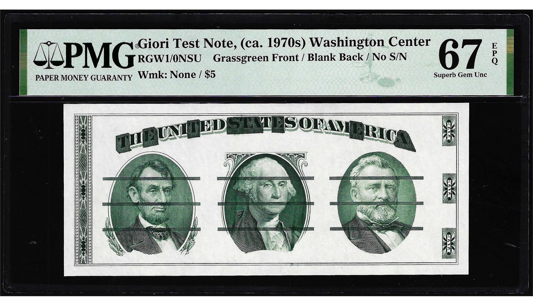 Circa 1970's Washington Center Giori Test Note PMG Superb Gem Uncirculated 67EPQ