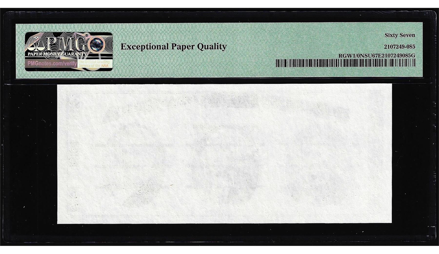 One Circa 1970's Washington Center Giori Test Note PMG Superb Gem Uncirculated 67EPQ. PMG Certified.