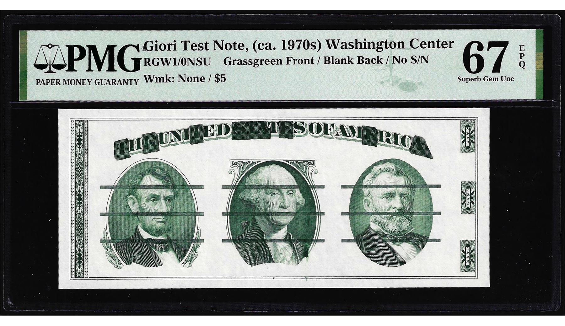 Circa 1970's Washington Center Giori Test Note PMG Superb Gem Uncirculated 67EPQ