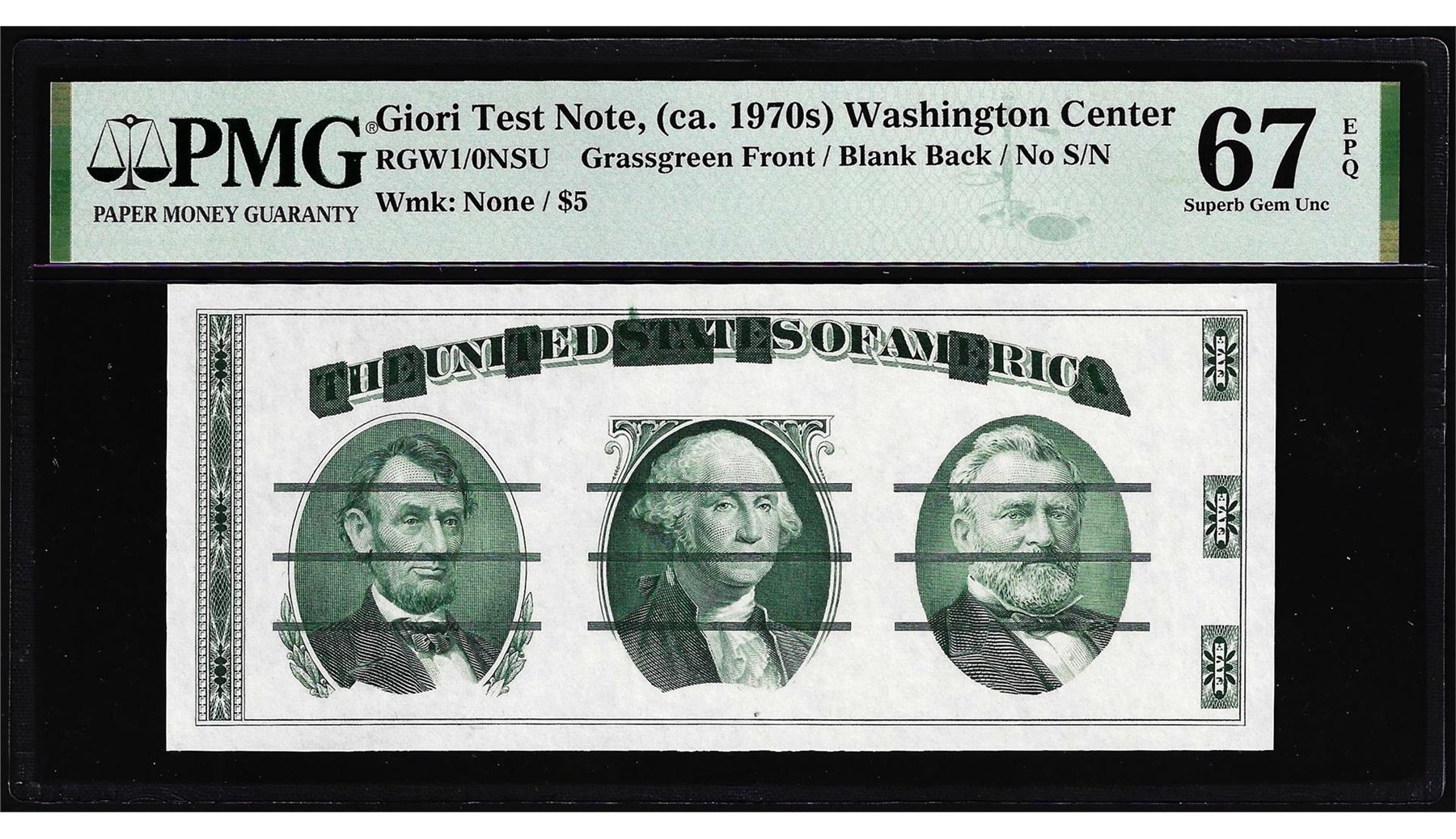 Circa 1970's Washington Center Giori Test Note PMG Superb Gem Uncirculated 67EPQ