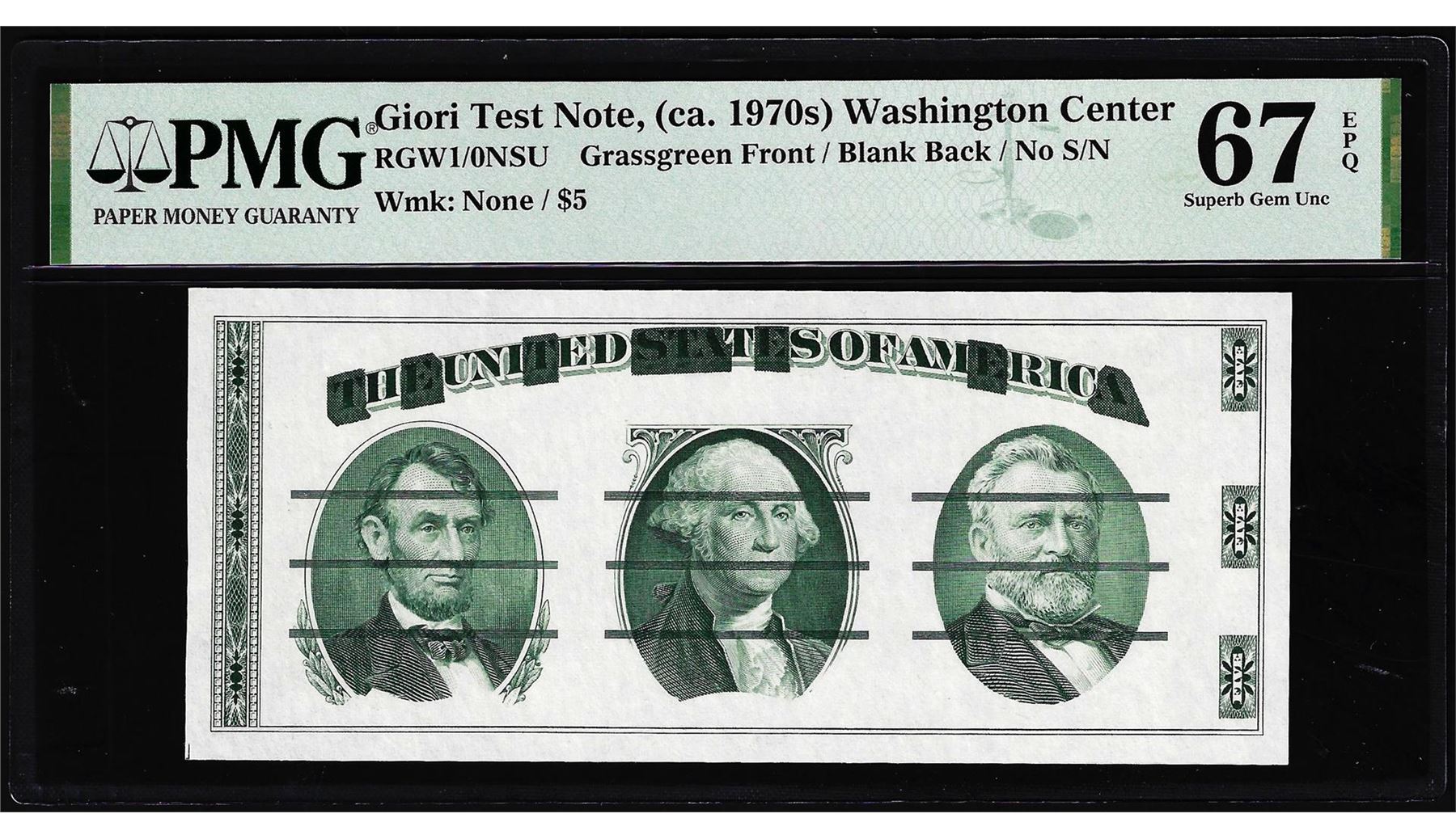 Circa 1970's Washington Center Giori Test Note PMG Superb Gem Uncirculated 67EPQ