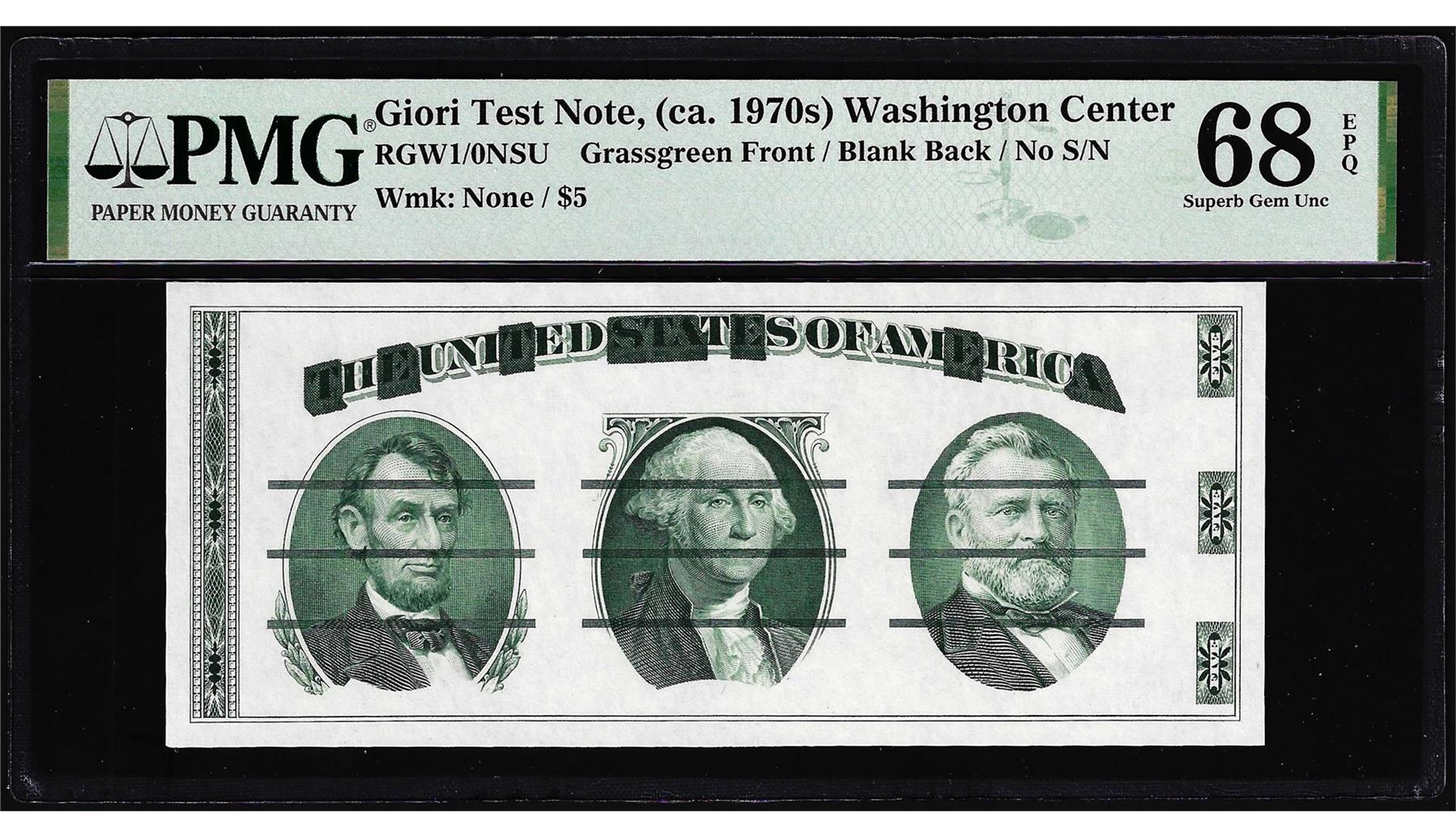 Circa 1970's Washington Center Giori Test Note PMG Superb Gem Uncirculated 68EPQ