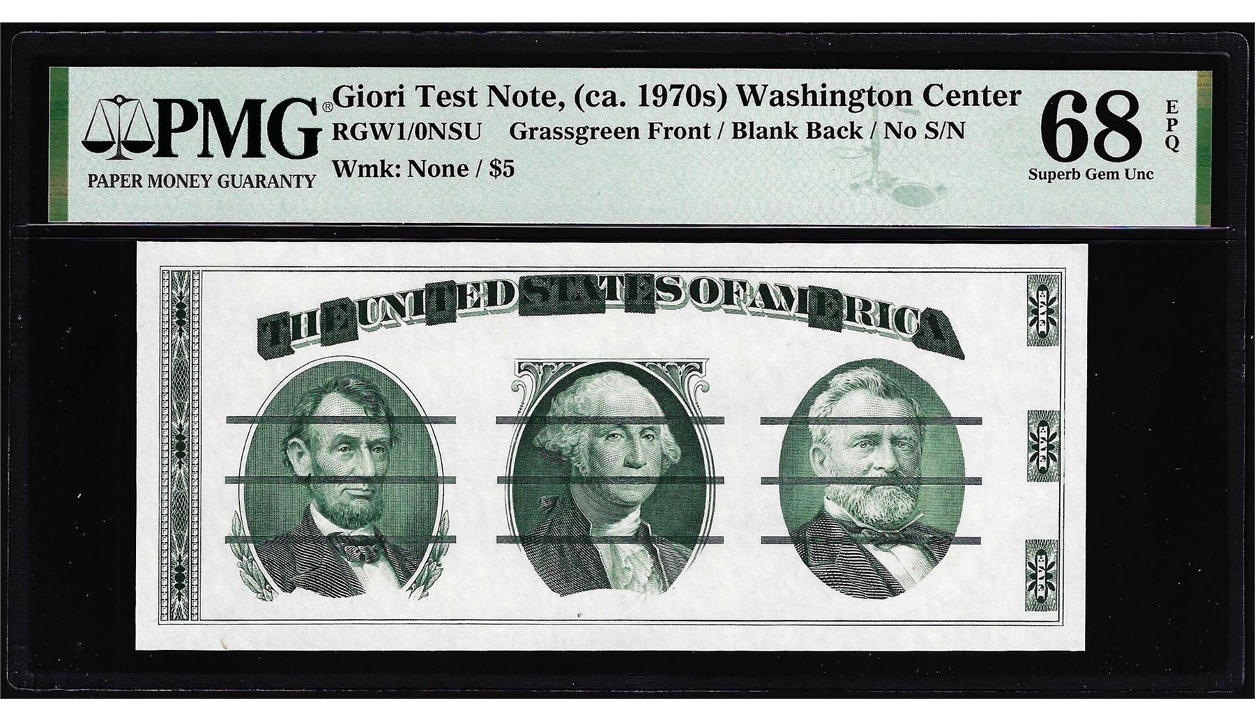 Circa 1970's Washington Center Giori Test Note PMG Superb Gem Uncirculated 68EPQ