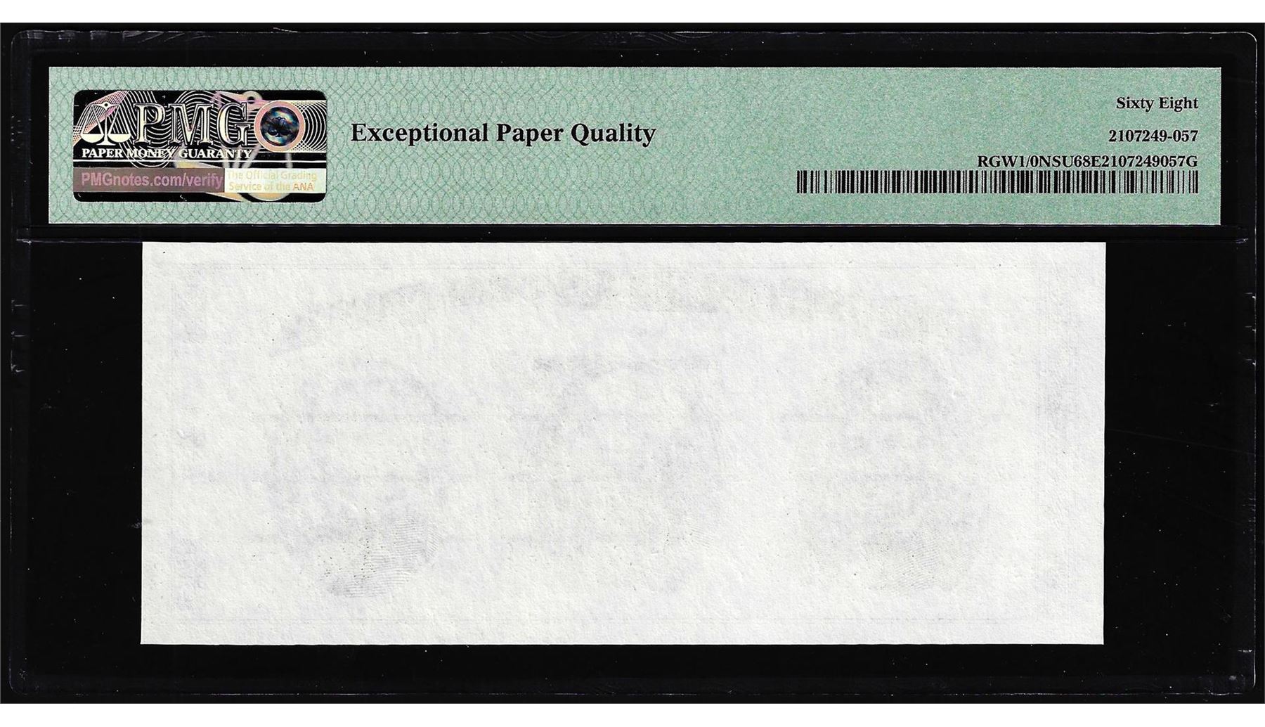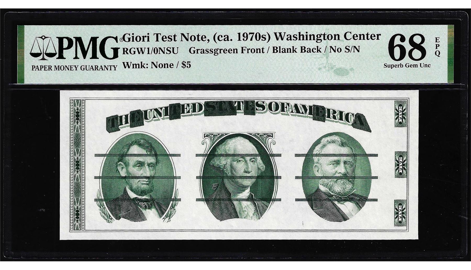 One Circa 1970's Washington Center Giori Test Note PMG Superb Gem Uncirculated 68EPQ. PMG Certified.