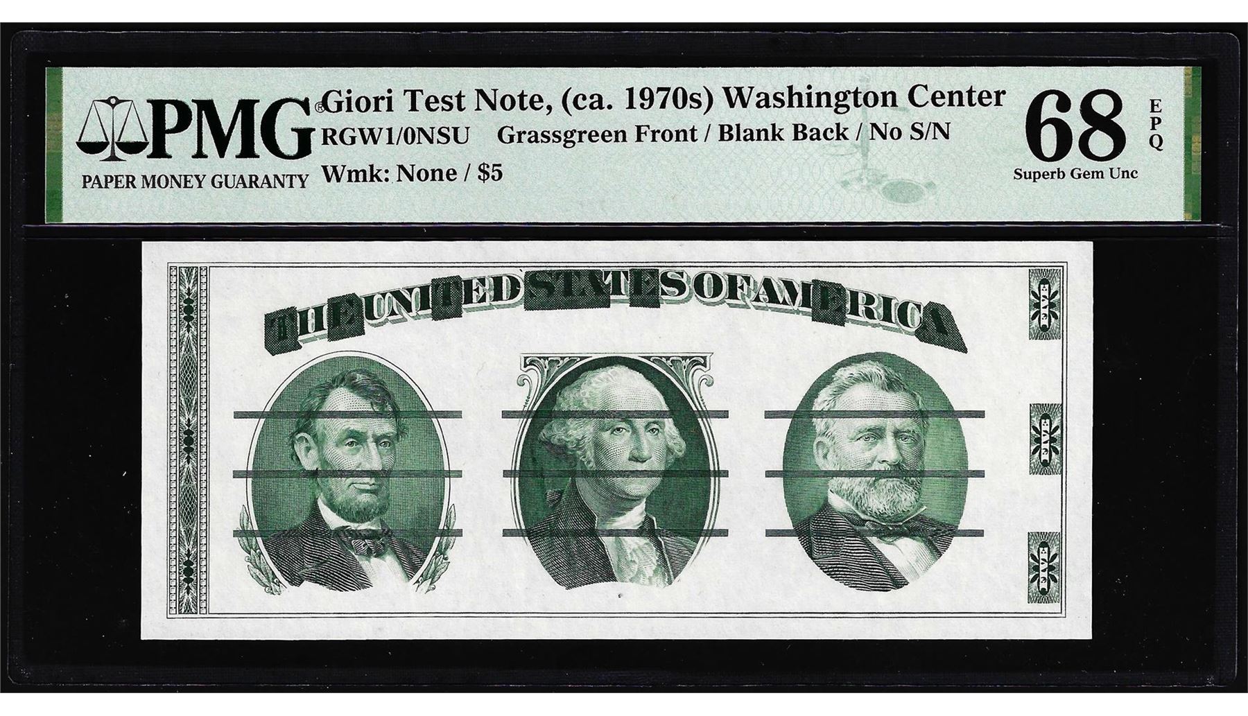 Circa 1970's Washington Center Giori Test Note PMG Superb Gem Uncirculated 68EPQ