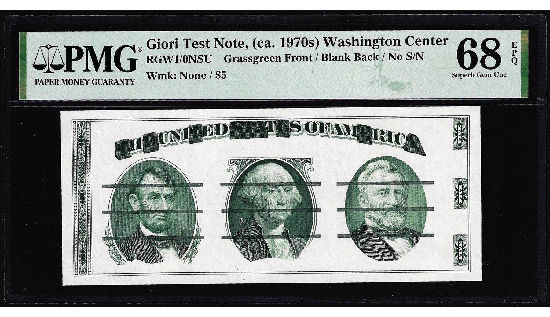 Circa 1970's Washington Center Giori Test Note PMG Superb Gem Uncirculated 68EPQ