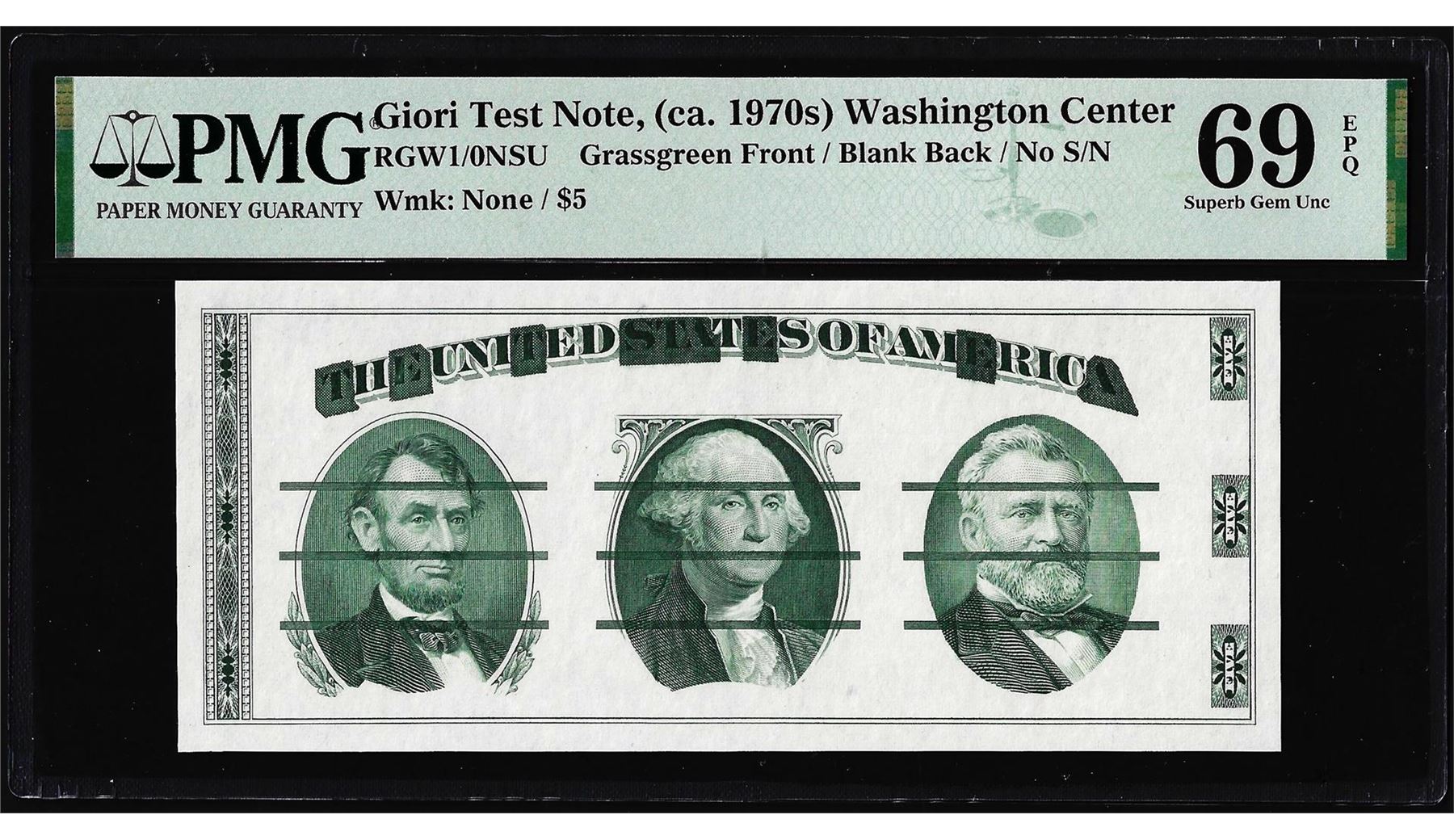 Circa 1970's Washington Center Giori Test Note PMG Superb Gem Uncirculated 69EPQ