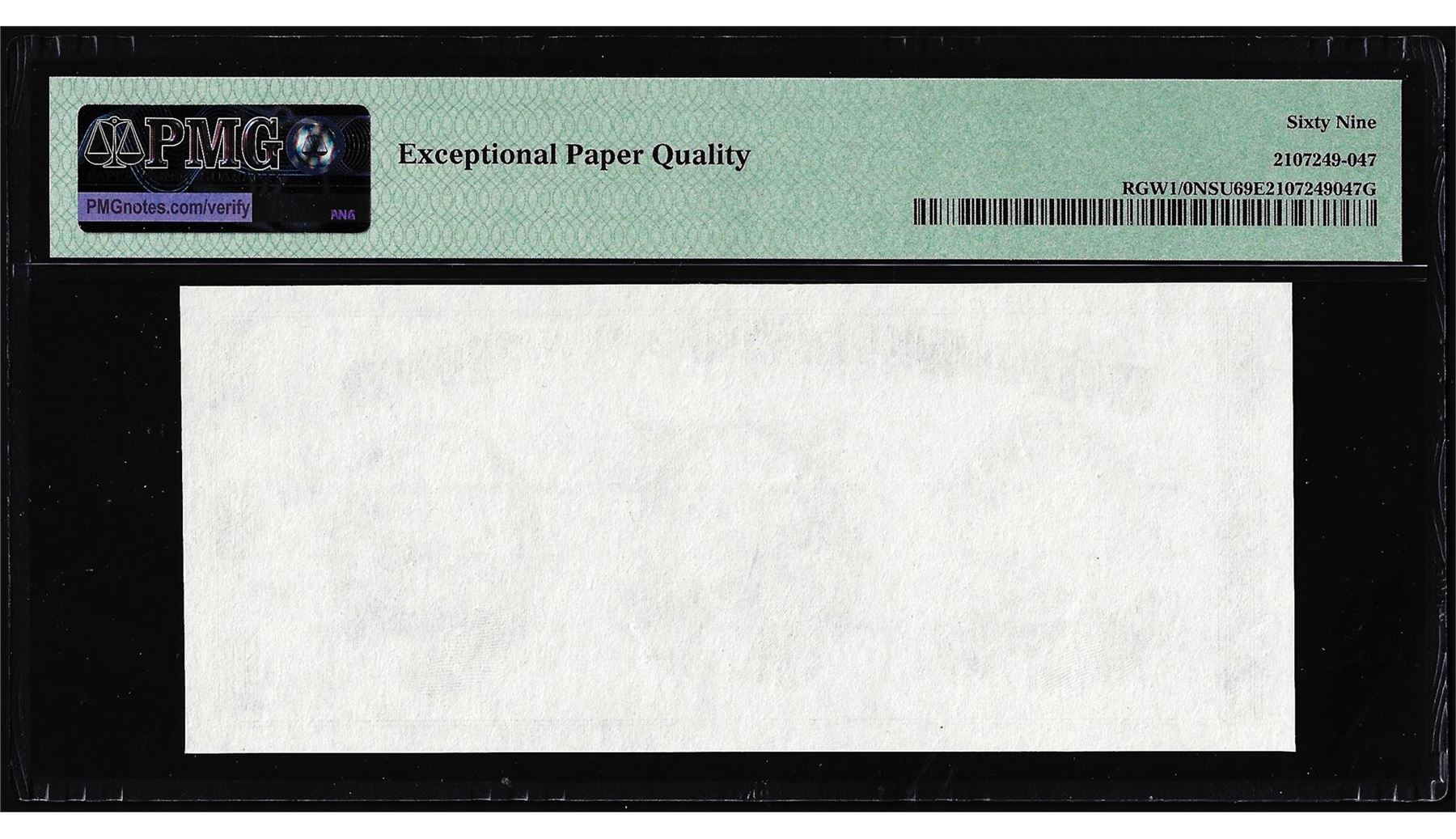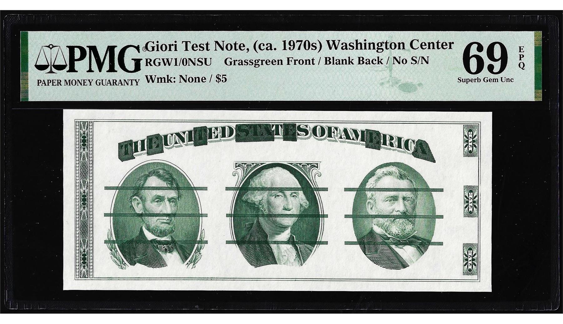 One Circa 1970's Washington Center Giori Test Note PMG Superb Gem Uncirculated 69EPQ. PMG Certified.