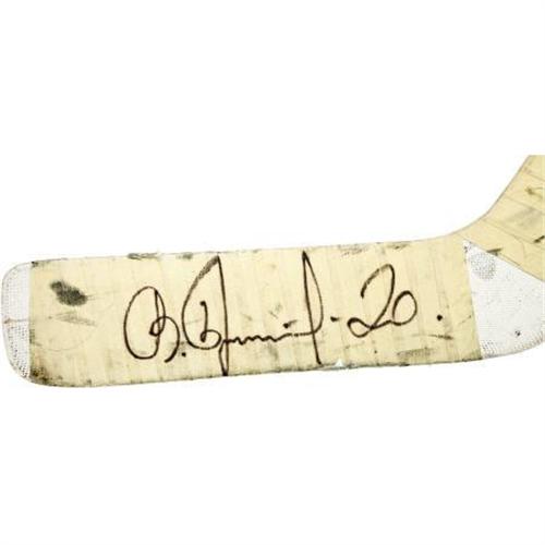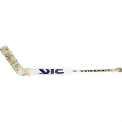 <B>Circa 1980 Vladislav Tretiak Game Used Stick.</B></I> The most celebrated netkeeper in the history of Soviet hockey, Tretiak was the last line of defense for three Olympic Gold Medal teams and during the famous 1972 Summit Series. Despite never playing an NHL game, Tretiak was enshrined in the Hockey Hall of Fame in 1989, the first Soviet to be honored as such. The offered Victoriaville goalie stick exhibits heavy use, with a sizeable divot gouged from the lower shaft and original tape on the handle and blade, the latter of which Tretiak has autographed in 10/10 black marker. A very tough stick for the advanced hockey collector. <I>LOA from PSA/DNA (autograph).</B></I><BR><BR><b>Shipping:</b> Bats, Clubs, Sticks, Swords, Rif (<a target="_blank" href="http://www.heritageauctions.com/common/shipping.php">view shipping information</a>)