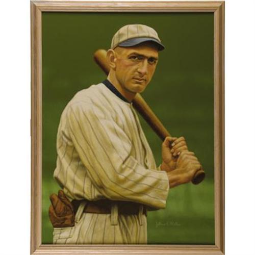 <B>Circa 2000 Shoeless Joe Jackson Original Artwork by Arthur Miller.</B></I> Stirring masterwork derives from the studio of Arthur K. Miller, an eminently skilled New England painter whose work has been exhibited as a one-man show at the Baseball Hall of Fame in Cooperstown since the year 2000 and is likewise featured in many upscale galleries and private collections worldwide. This portrait of the brilliant but troubled Shoeless Joe is arguably the cream of the crop, and has been used to create one of his top-selling lithographs at his website www.ArtoftheGame.com. Though Miller's style could be characterized accurately at photorealism, his works suggest far more than hypersensitivity to detail, with his brilliant command of light and shadow providing a soulfulness that no photograph could muster. This 24x32" acrylic on board seems to capture the strain and sadness of the 1919 scandal in Jackson's gaze with the subtlety and humanity of Mona Lisa's smile. Unquestionably one of the most arresting works of sports art we have encountered. Framed to 27x36".<BR><BR><b>Shipping:</b> Framed - without Glass, Large (<a target="_blank" href="http://www.heritageauctions.com/common/shipping.php">view shipping information</a>)