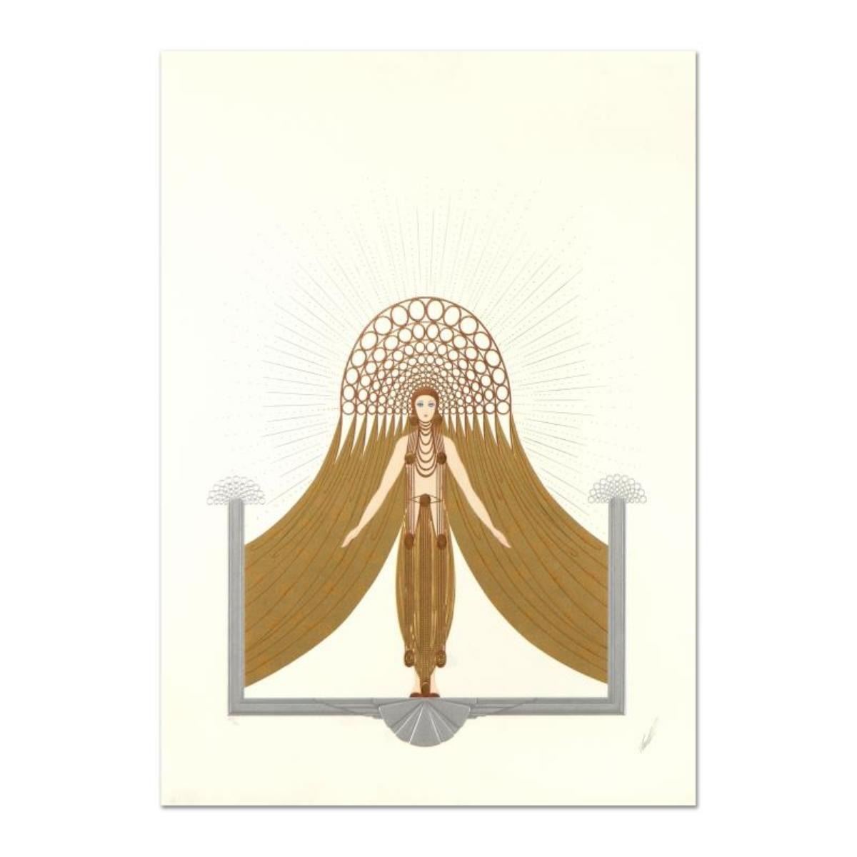 "Circe (Myths Suite)" is a limited edition embossed serigraph on paper by Erte (1892-1990), numbered and hand signed by the artist. Includes Certificate of Authenticity. Measures approx. 24.5" x 34" (with border), 20" x 28" (image).